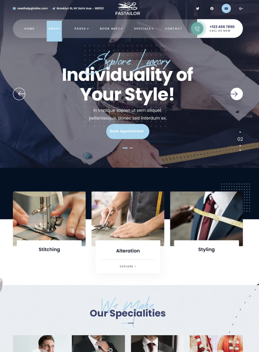 This Tailor WordPress Theme is designed to prove as an ideal pick for businesses and individuals that excel in custom tailoring, alterations, clothing, and clothes restoration services. After constantly analyzing the needs of tailoring businesses, makers have come up with a visually appealing and technically sound theme that keeps things simple and straight. Being convenient to use for both, expert developers as well as beginners, it offers a fully customizable layout using which you will be able to bring your ideas into reality.